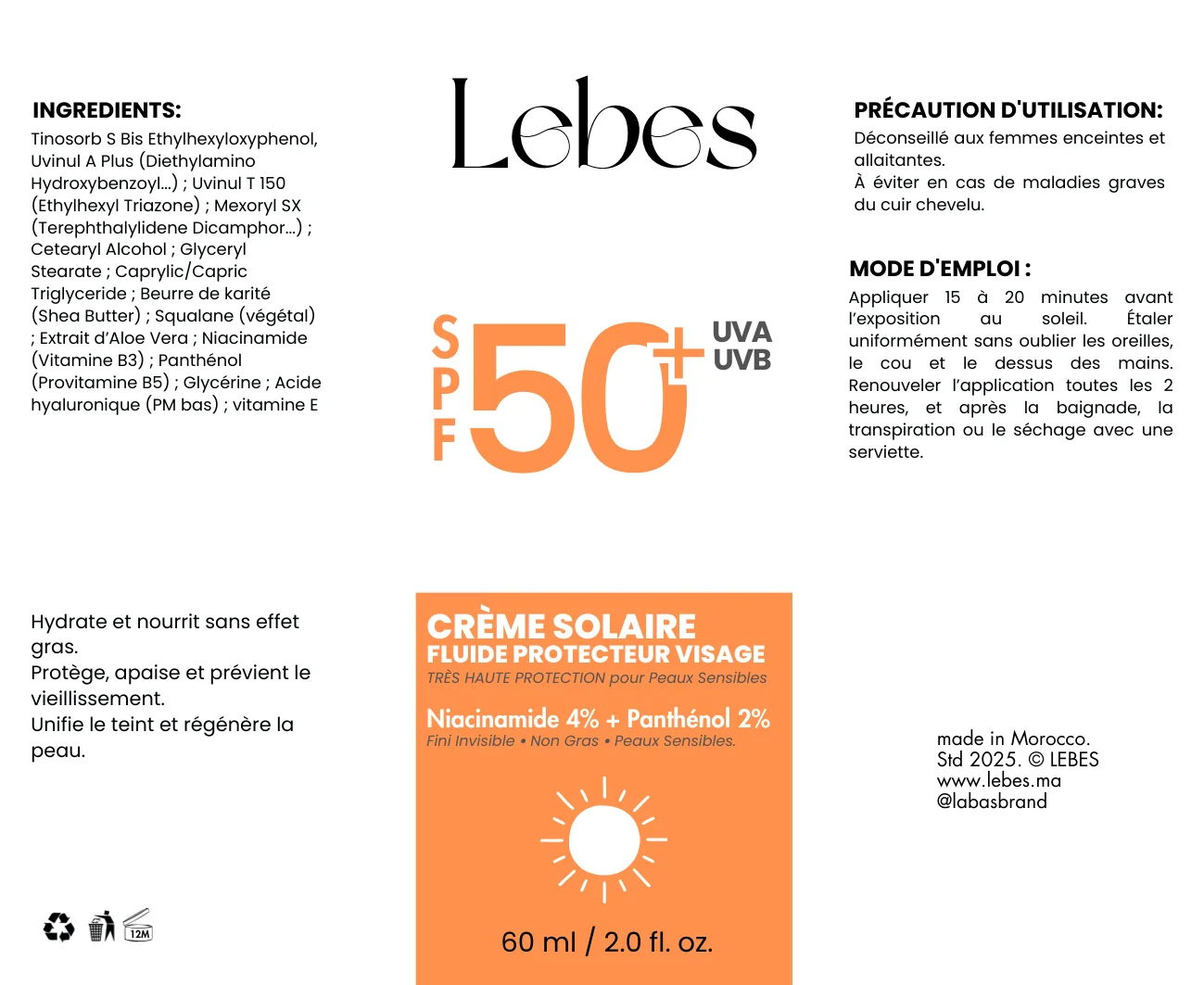 - Prévention du vieillissement: la protection SPF50+ UVA/UVB est essentielle pour limiter les dommages liés au soleil.