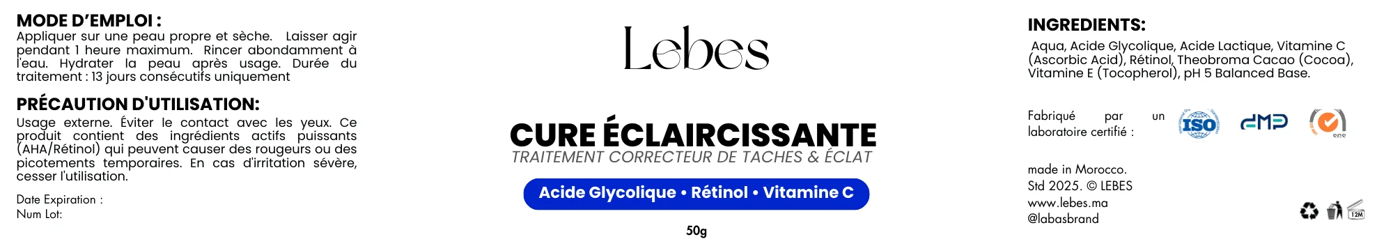 - Crème Éclat + Vitamine C (teint lumineux, aide anti-taches, antioxydant).